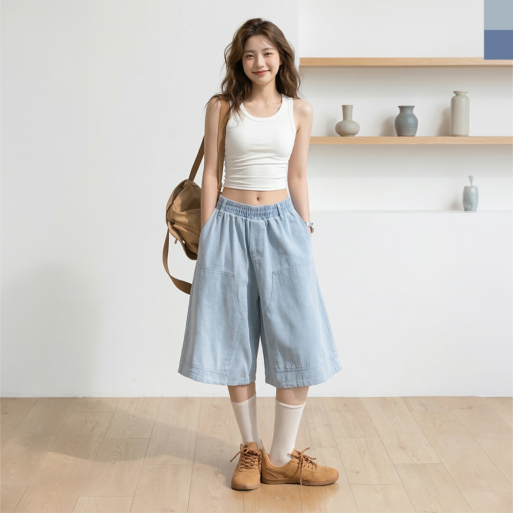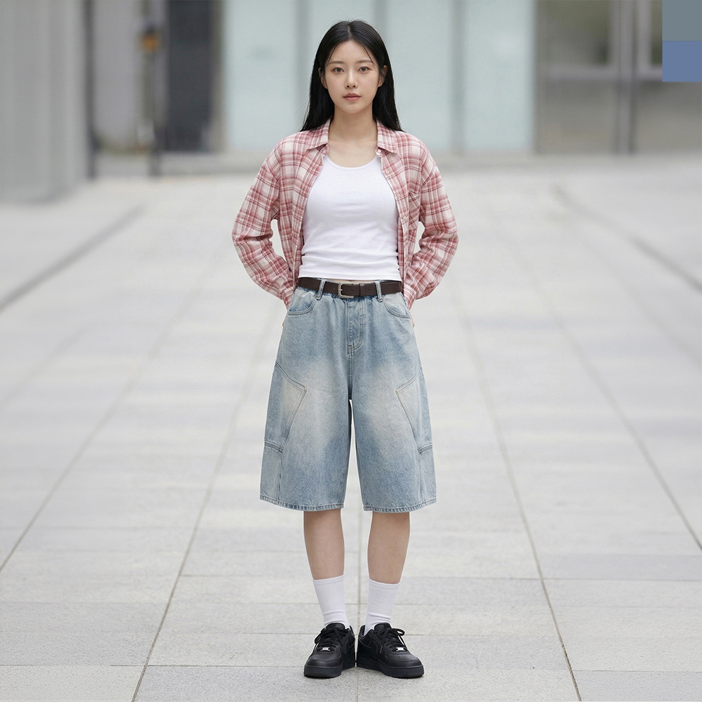 ACC 2009W 여자 카펜터 버뮤다 와이드 밴딩 데님 반바지