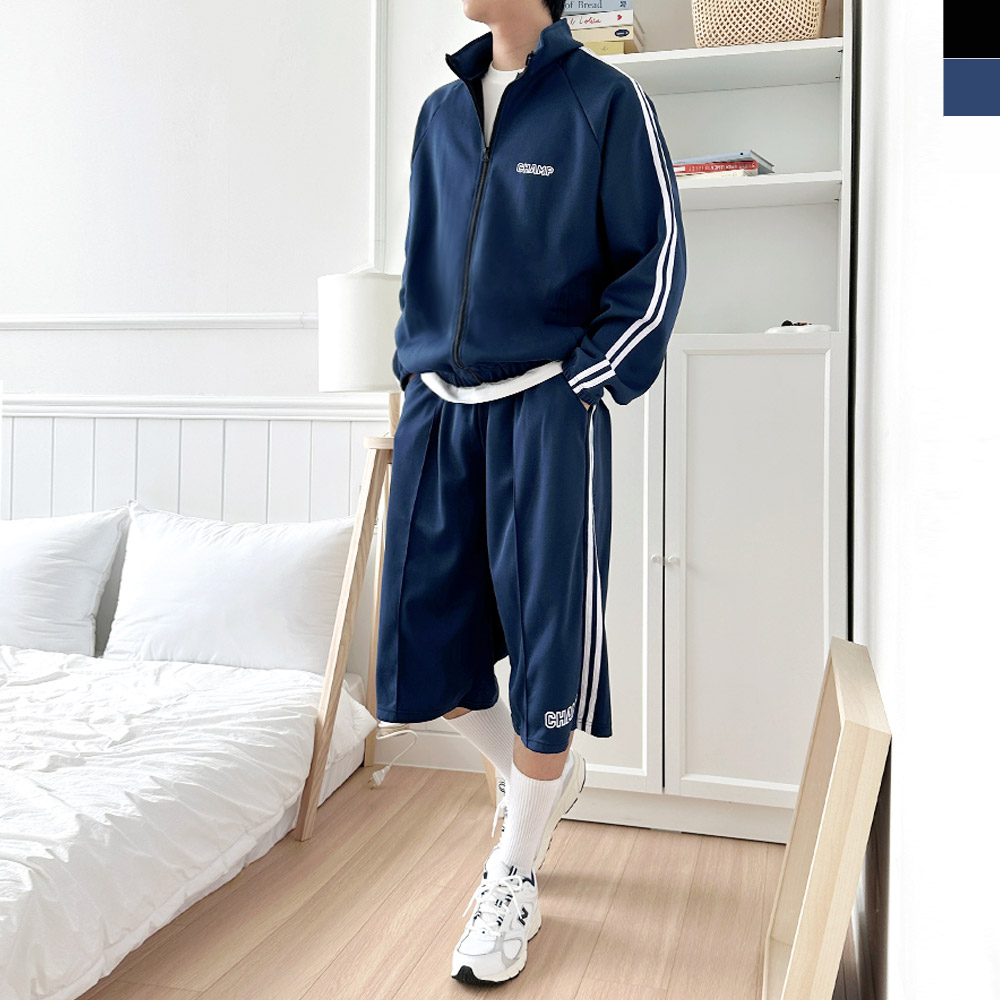 ACC SF1029M-SS1010M 남자 투라인 트랙 집업 트레이닝 자켓 와이드 버뮤다 7부 세트