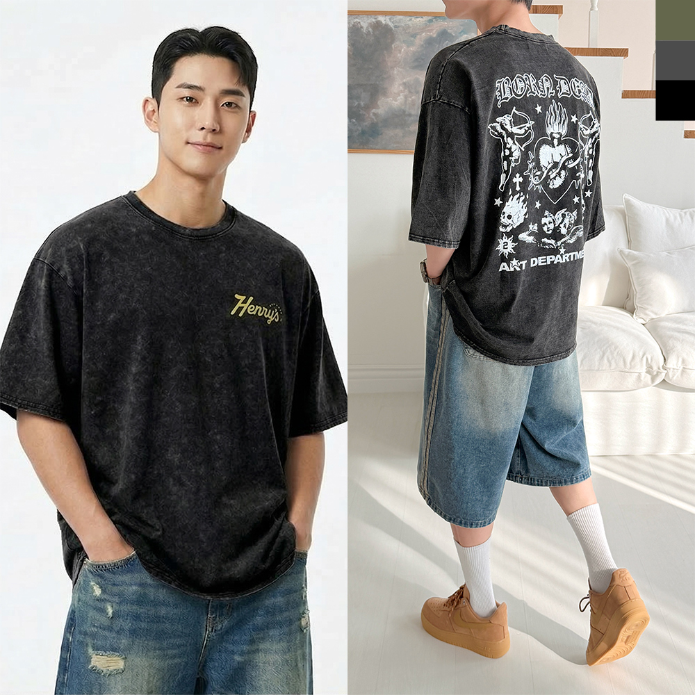 ACC 2006M 남자 빈티지 워싱 레터링 반팔 티셔츠