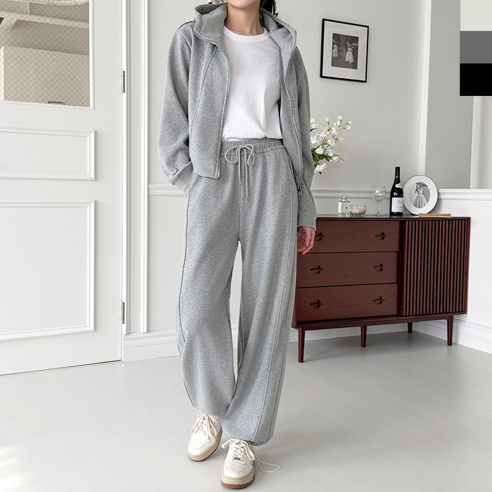 GBB FW1053W 여자 투웨이 포근 기모 후드집업 라인 와이드 트레이닝 세트
