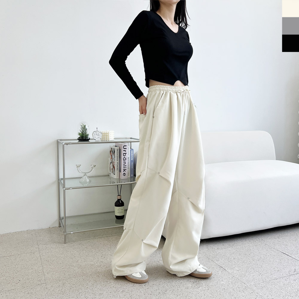 GPA SF1030W 여자 리벳 팬츠 무릎핀턱 스트링 조거 와이드