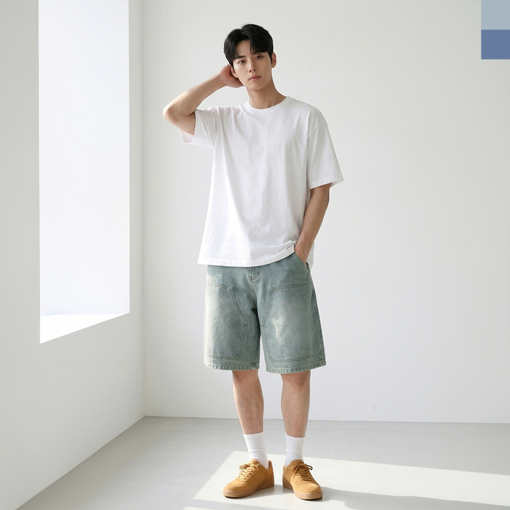 ACC 2009M 남자 카펜터 버뮤다 와이드 밴딩 데님 반바지