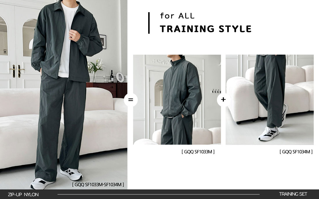 GQQ SF1033M-SF1034M 남자 오버핏 하프넥 집업 바람막이 나일론 와이드 바지 세트
