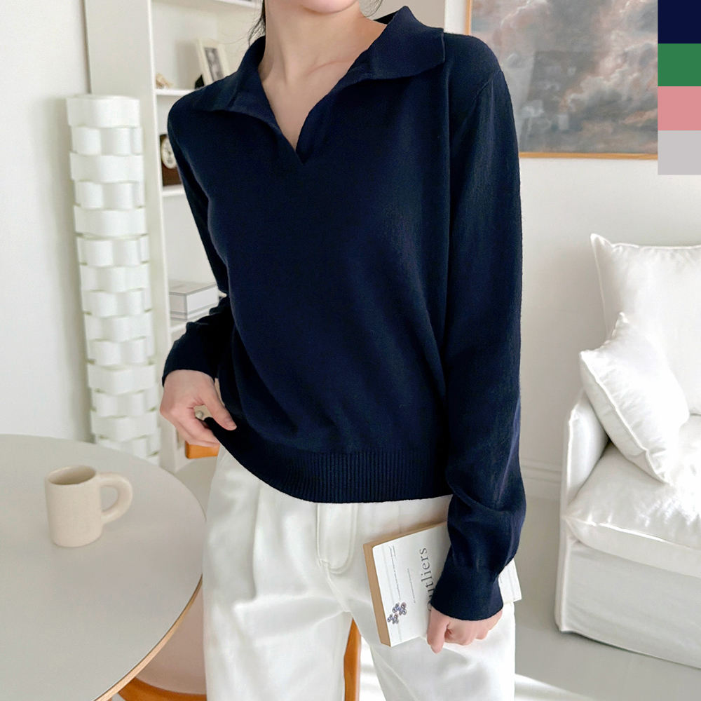 CAT 1097 여자 울 오픈 카라 모던 니트