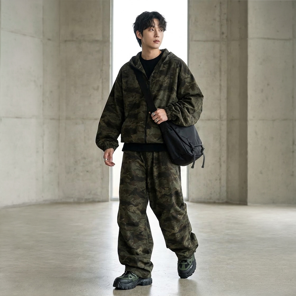 GQQ SF1033M-SF1034M 남자 오버핏 하프넥 집업 바람막이 나일론 와이드 바지 세트