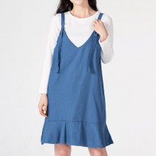 BST 375 여자멜빵프릴긴팔원피스_티셔츠포함 묶음쎄일 블루4 총4장