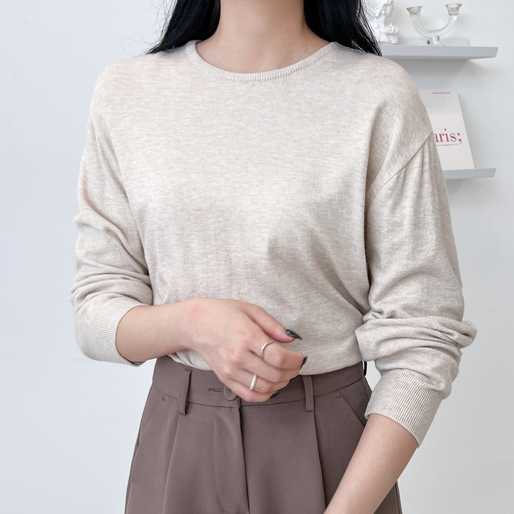CAT 1091 여자 캐시미어 모던 라운드 기본 니트