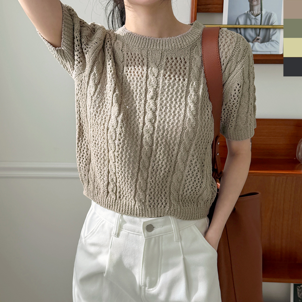 CAT 1099 여자 베리 꽈배기 스카시 반팔 니트