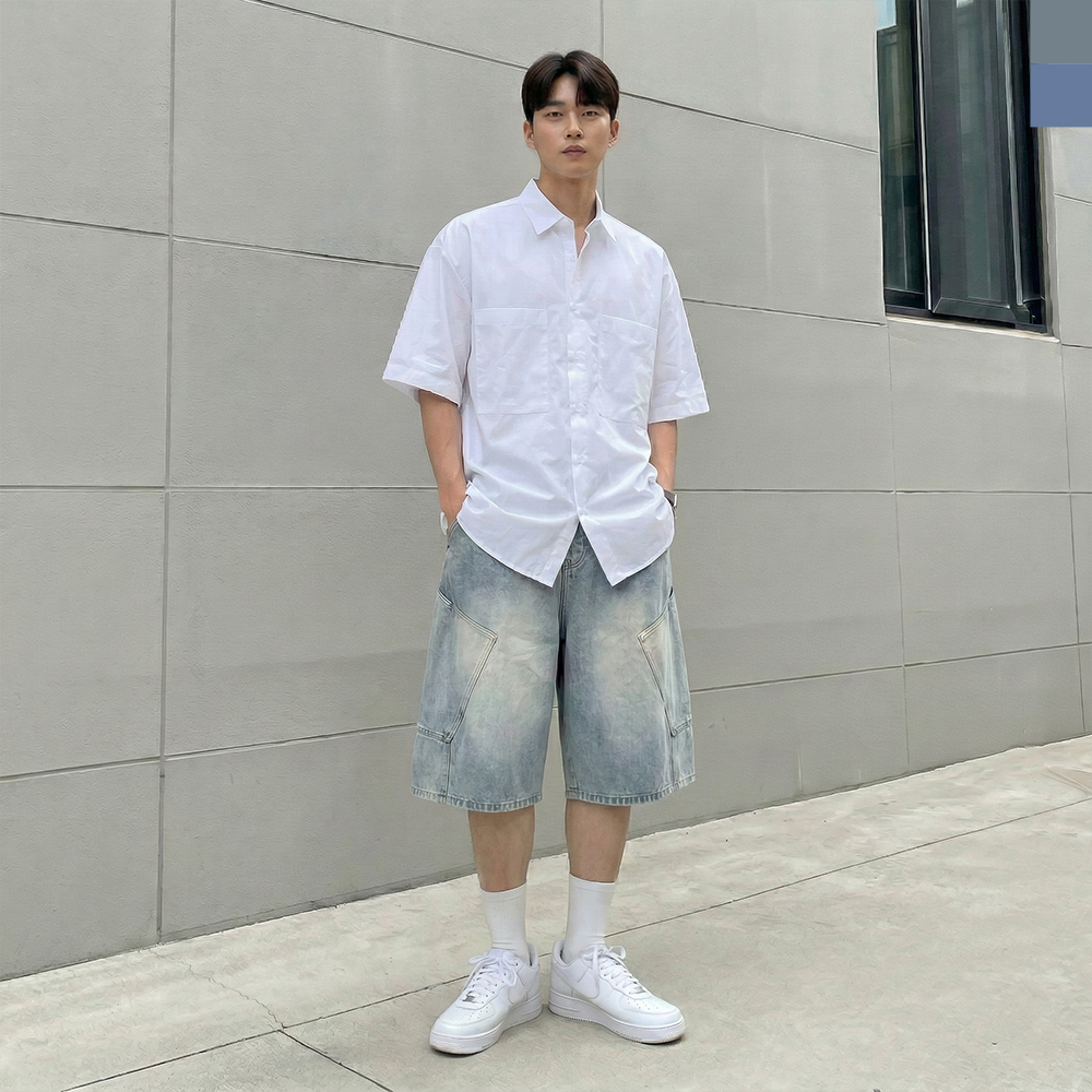 2L-SIN WSF5002 여자 오버핏 포켓 청남방 데님 셔츠