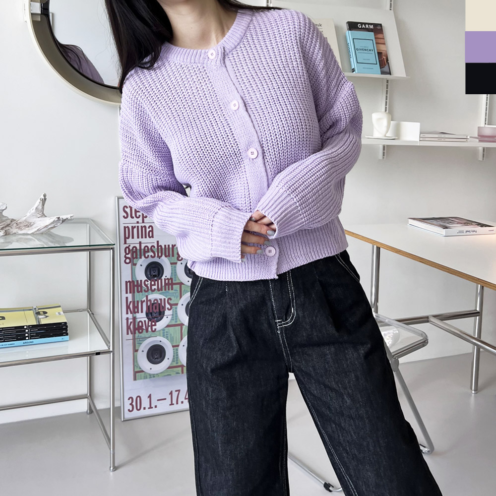 CAT 1063 여자노멀 라운드 버튼니트가디건