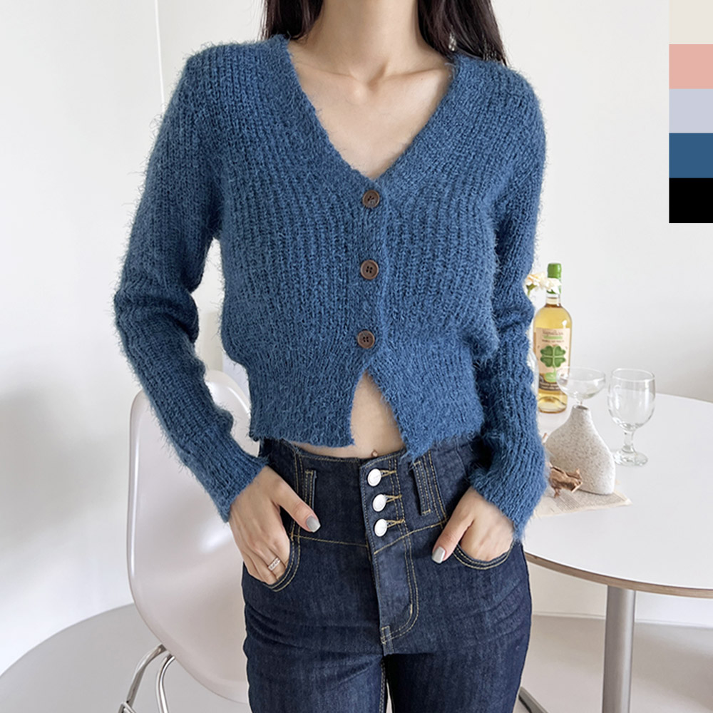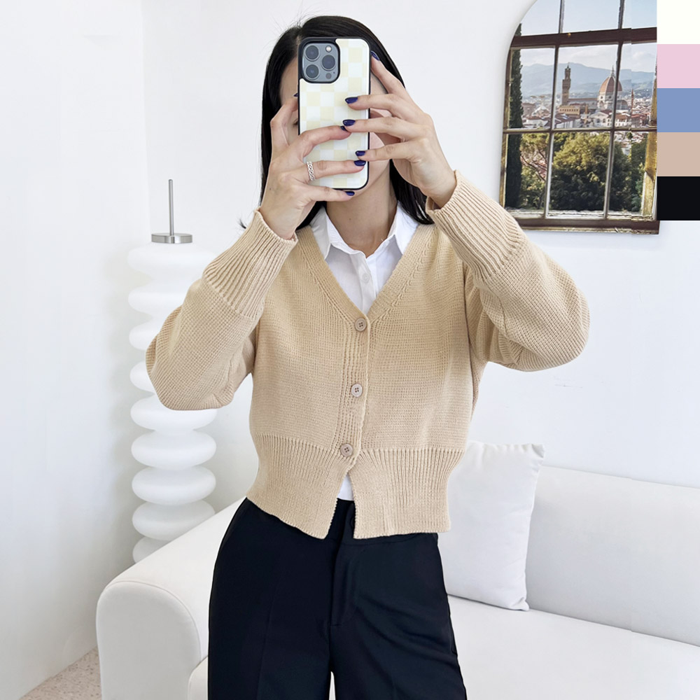 CAT 1037 여자퍼브이넥 크롭니트 가디건