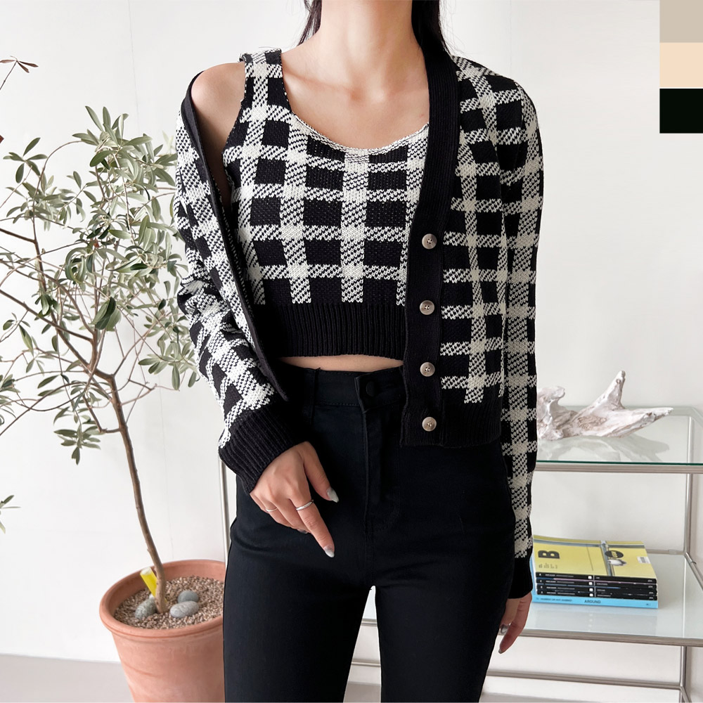CAT 1046 여자플로어 니트 나시가디건SET